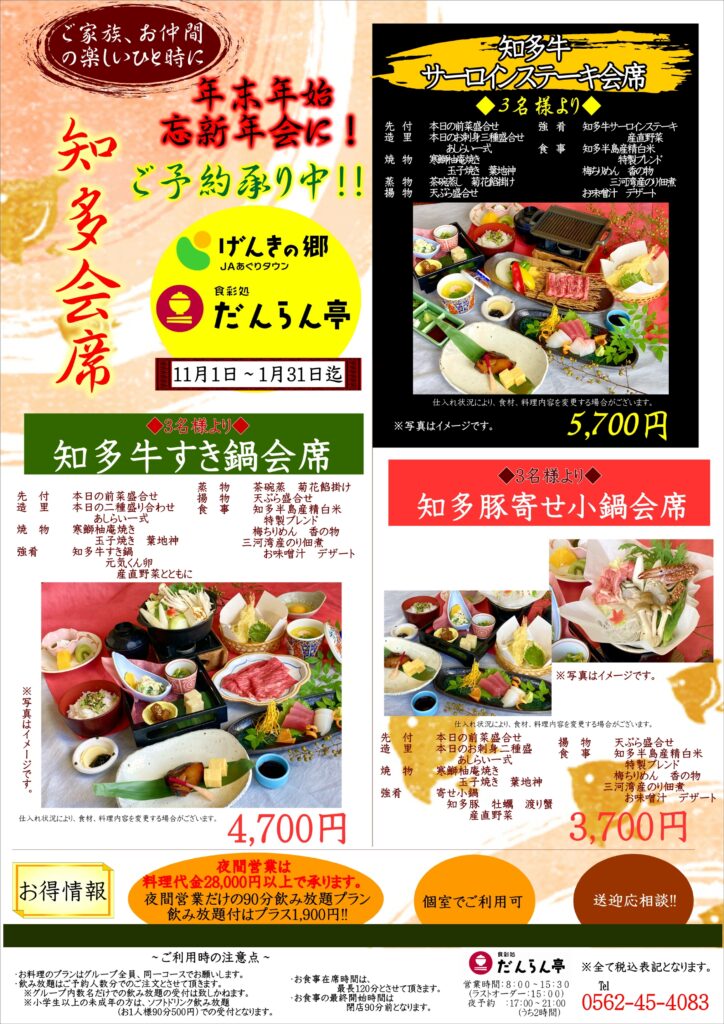 2025年11月08日だんらん亭より 夜の年末年始 忘新年会メニュー