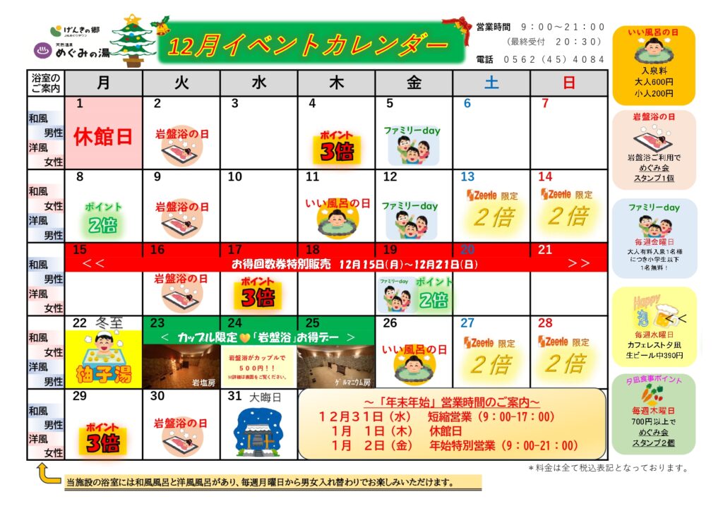 2025年12月01日12月 めぐみの湯イベントカレンダー