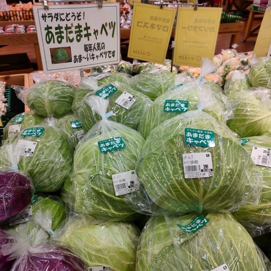 キャベツ、ほうれん草、大根、ねぎ、ブロッコリー、菜花、新タマネギ