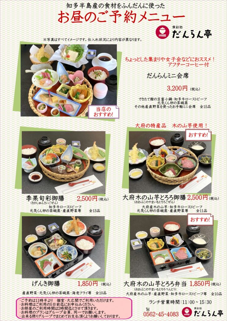 2026年01月04日だんらん亭より お昼ご予約料理・会席料理のご案内(1月)